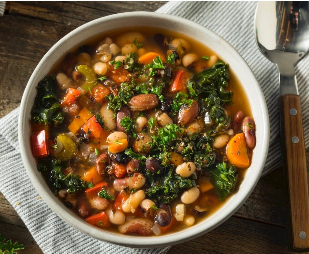 A 32 ounce container of hearty, longevity inspired comfort made with cannellini beans, pinto beans, and chickpeas, simmered with onion, carrots, celery, tomatoes, potatoes, fennel, kale, parsley, and basil. Rich in plant-based protein, fiber, and nutrient-dense vegetables, this classic minestrone is deeply nourishing and designed to support vibrant, long-term wellness.