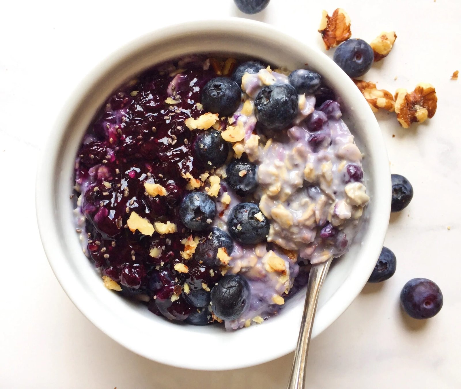 A thick, creamy, dessert-inspired blend made with sprouted gluten-free oats, chia, hemp, and flax seeds soaked in unsweetened vanilla almond milk and finished with rich coconut yogurt. Toppedwith real blueberry compote, a light salted sweet granola crumble and almond slices. this nourishing oat blend supports steady energy, digestion, and lasting fullness while delivering cozy blueberry cobbler flavor in every bite.