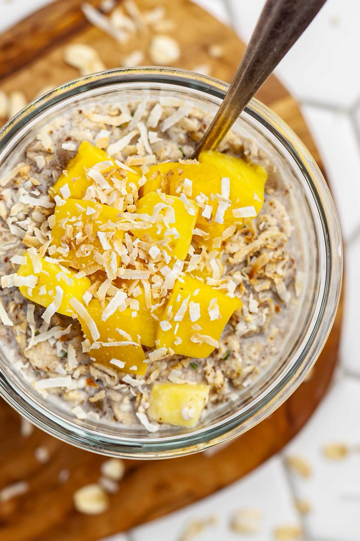 16 oz container made with organic gluten free oats, chia seeds, flax, hemp seeds, and lavender infused coconut milk blended with Siggys plant based yogurt. Finished with juicy organic mango and toasted coconut for a tropical, nourishing start to your day.